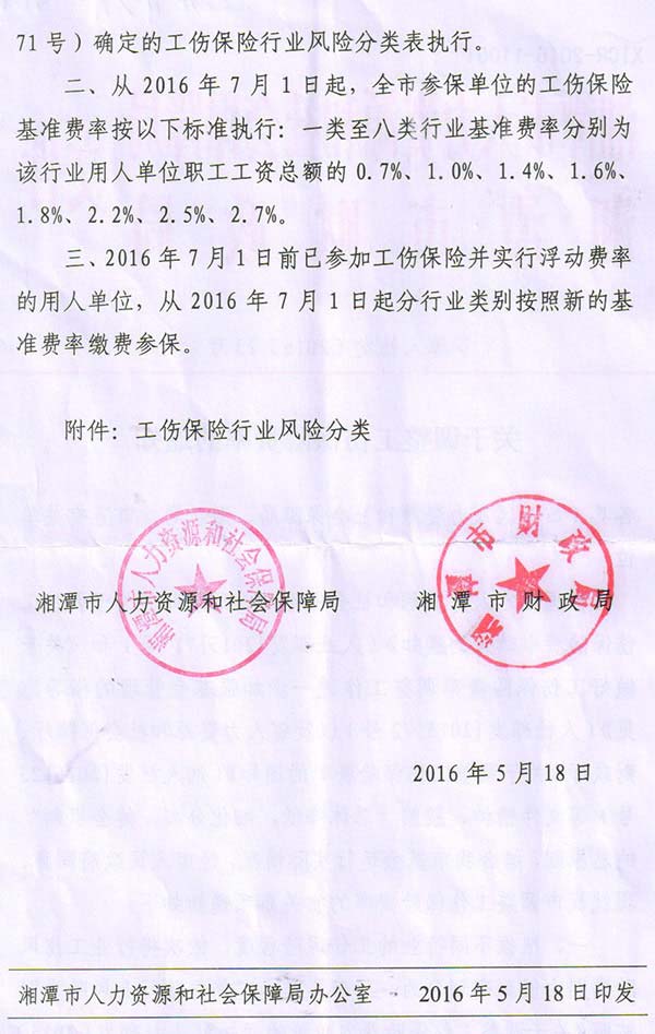 《關(guān)于調(diào)整工傷保險費率的通知》